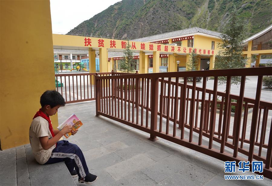 在大興地鎮維拉壩“珠海小區”小學,一名學生在翻閱圖書(6月24日攝)。新華社記者秦晴攝