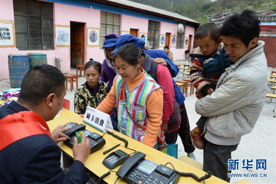 獨龍族群眾在辦理金融業務(2015年3月25日攝)。新華社記者胡超攝