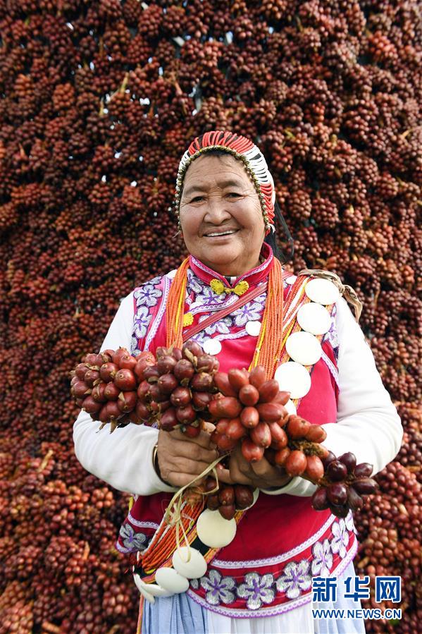 11月2日,云南福貢縣鹿馬登鄉干布村的傈僳族老人妮四菊站在豐收的草果前。新華社記者楊宗友攝