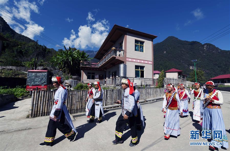 11月2日,云南福貢縣鹿馬登鄉干布村的傈僳族群眾行走在水泥硬化路上。新華社記者楊宗友攝
