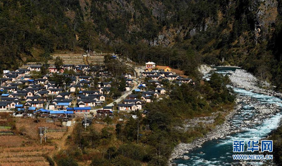 位于獨龍江畔的獨龍江鄉迪政當村的集中安居房一景(2016年11月23日攝)。新華社記者藺以光攝