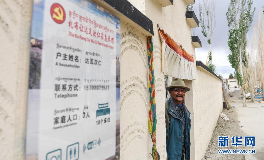 76歲的達瓦次仁在位于西藏阿里地區札達縣托林鎮札布讓村的家門口(7月30日攝)。新華社記者晉美多吉攝