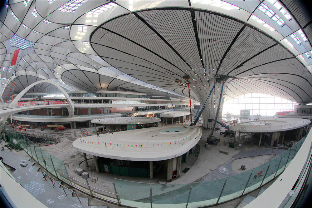 2019年1月20日,北京,探訪北京大興國際機場航站樓,建設工地正在如火如荼地有條不紊地建設之中。丁幫學/千龍圖像/視覺中國