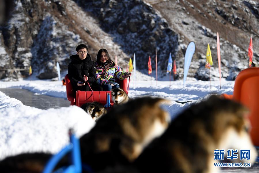 1月18日,游客在新疆天池景區玩電動狗拉雪橇。新華社記者 沙達提 攝