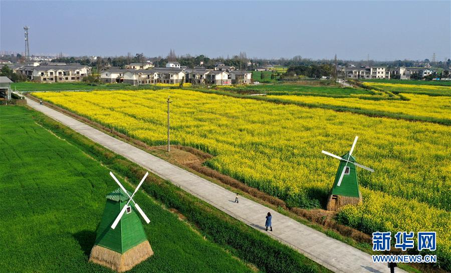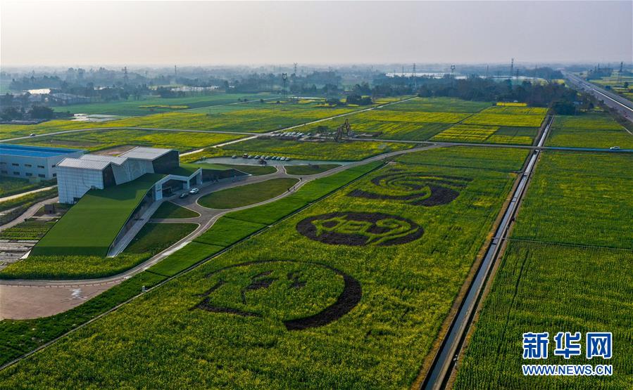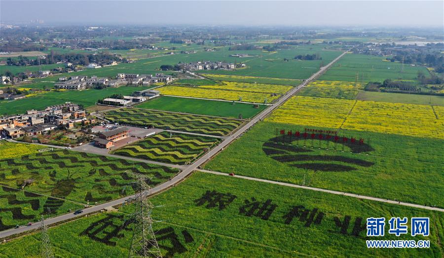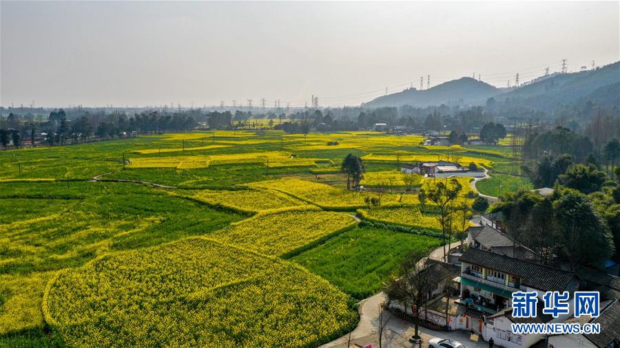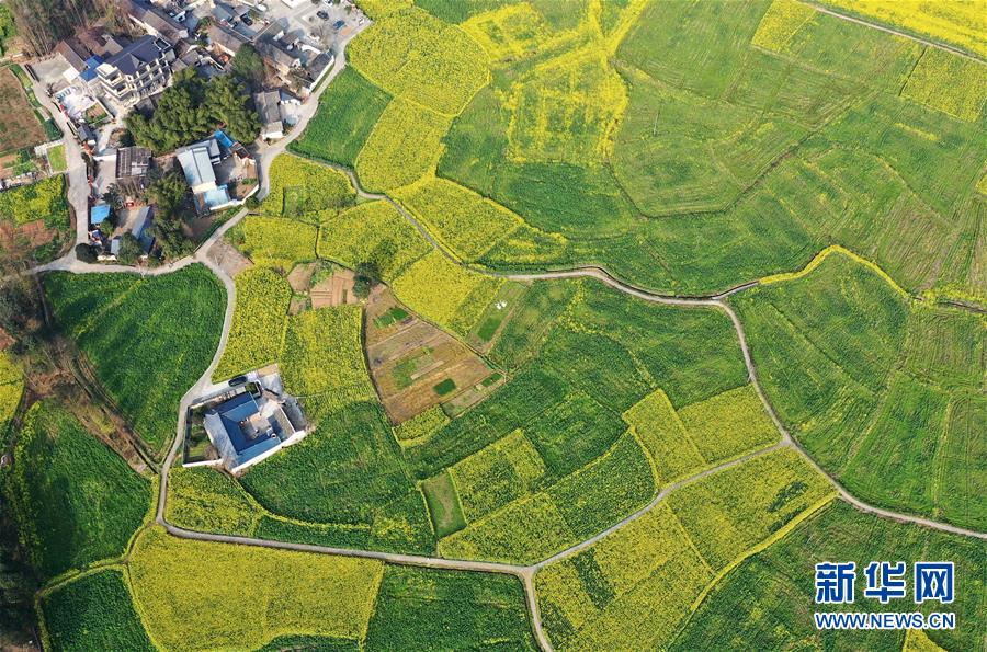 2月25日在四川省崇州市農業產業功能區拍攝的油菜花田(無人機照片)。新華社記者王曦攝