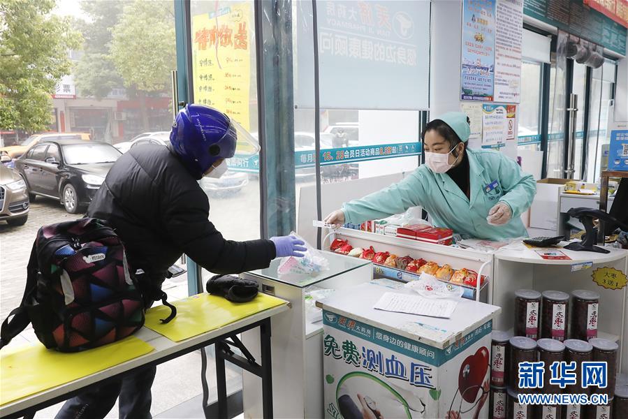 2月22日,王春波將藥品遞給前來買藥的外賣騎手。王春波是武昌天濟大藥房錦繡江南店的一名店員,在武漢下達“所有小區全面實施封閉管理”的禁令之后,很多居民買藥成了麻煩事,尤其是獨居的老年人。她知道后,主動聯系物業告知大家,如果有需要,她可以上門送藥。現在,她和同事每天要派送100多單藥品,大部分都是“三高人群”服用的藥。很多顧客很感激王春波,“幸虧你們一直開業,東西也齊全,一分錢都沒漲!”王春波說:“關鍵時期,大家都是在相互幫忙,這就是很平常、很普通的一件事。”新華社記者熊琦攝