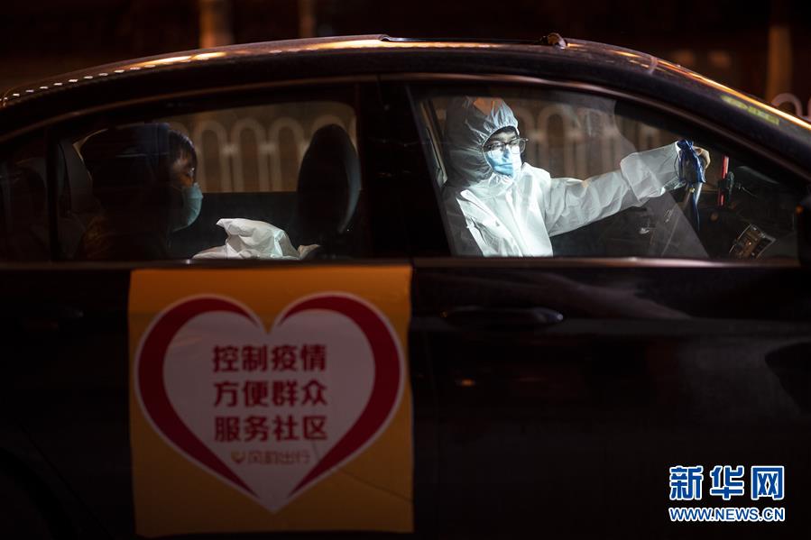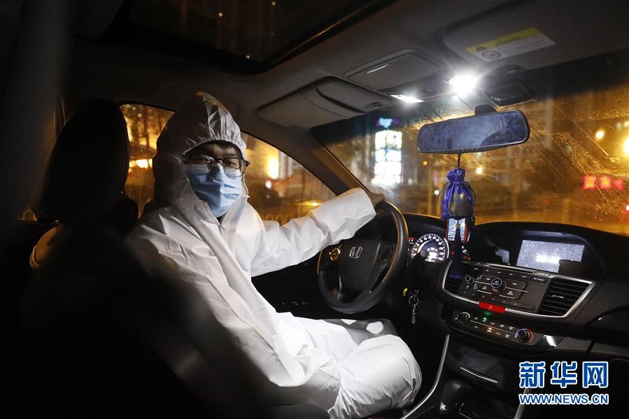 2月21日,王永朋在路邊等待,準備接單。這個春節王永朋沒回老家甘肅安陽,他報名擔任高德醫護專車志愿者,開著年前剛買的新車,免費接送醫護人員上下班。因為住在武漢新洲區,距離江漢、武昌等老城區有相當一段車程,他每天早上6點就起床出車,晚上十一二點才能回家休息,一天接送幾十位醫護人員上下班。每次到達目的地,醫生和護士下車后做的第一件事,總是向他致謝,還有不少人硬要塞錢給他,穿著防護衣、戴著口罩和護目鏡的王永朋,每次都微笑著退回了。新華社記者熊琦攝