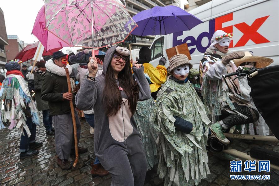 2月27日,人們在比利時布魯塞爾參加狂歡節活動。 新華社記者鄭煥松攝