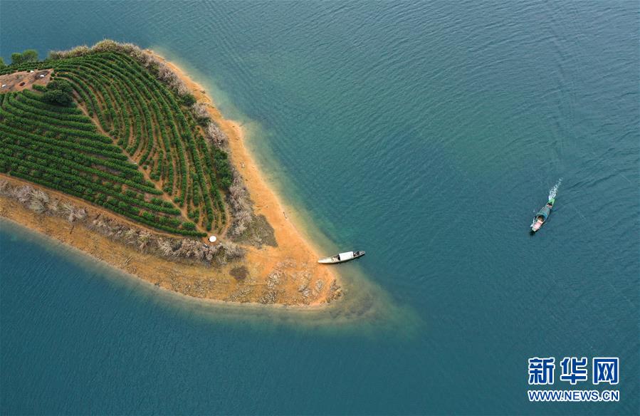 這是淳安縣里商鄉村坑村一片茶園(3月2日攝,無人機照片)。當日,浙江省淳安縣春茶全面開采,千島湖上星星點點的“島嶼茶園”浮在碧波之上,如夢似幻。新華社記者翁忻旸攝