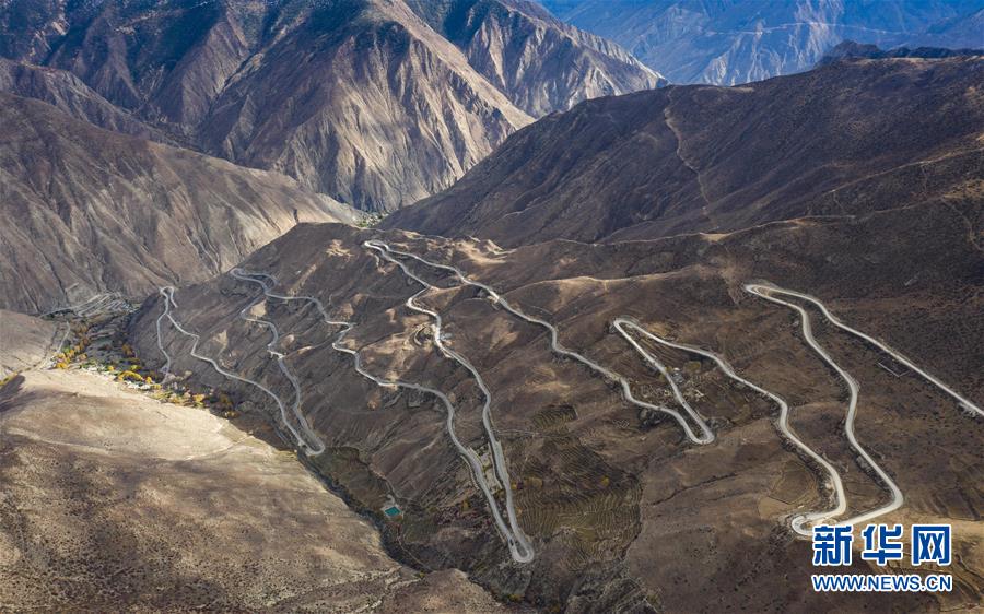這是“怒江72拐”,該處位于西藏自治區(qū)昌都市八宿縣境內(nèi),是川藏線上一段艱險與美景并存的山路(10月23日無人機(jī)拍攝)。全長2000多公里的川藏公路,從成都開始,一路向西到終點(diǎn)拉薩,在橫斷山脈、喜馬拉雅山脈和念青唐古拉山脈間蜿蜒盤旋,因海拔落差大,彎道眾多,形成天路奇觀。川藏公路1954年12月25日通車,65年來,國家對川藏公路進(jìn)行了大規(guī)模改造升級,建設(shè)了眾多橋梁和隧道,行車條件得到明顯改善。新華社記者江宏景攝