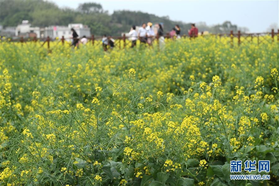 3月8日,游客在賓陽縣古辣鎮欣賞田園春色。 近日,廣西賓陽縣古辣鎮境內不少鄉村菜花一片金黃,呈現一派春意融融的宜人景象。 新華社記者 陸波岸 攝