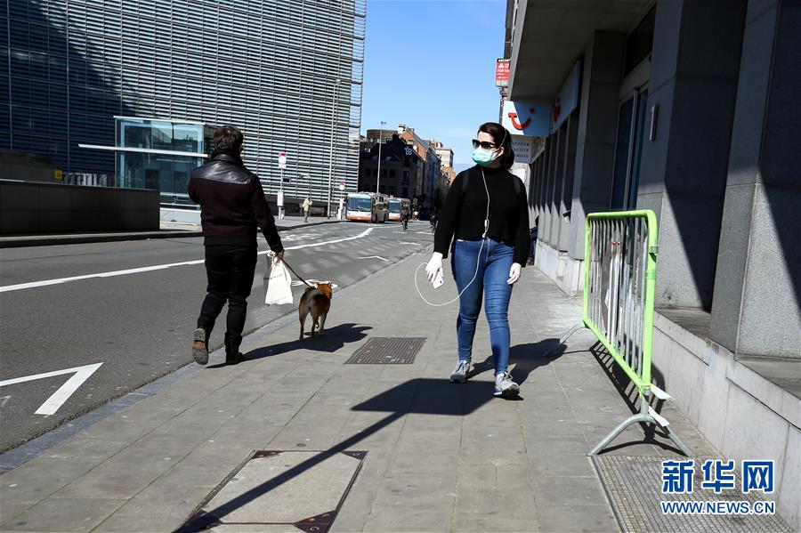 3月18日,在比利時布魯塞爾,佩戴口罩的行人走在馬路上。 截至17日,比利時累計確診新冠肺炎病例1243例,死亡10例,治愈出院15例。比利時首相維爾梅斯當天宣布,從18日12時起全國范圍內將實施“封城”,結束時間暫定為4月5日。根據全國安全委員會特別會議決定,除上下班,購買食品、藥品、就醫等特定情況外,全國民眾必須待在家中;有條件的企業必須進行遠程辦公。 新華社記者 張鋮 攝