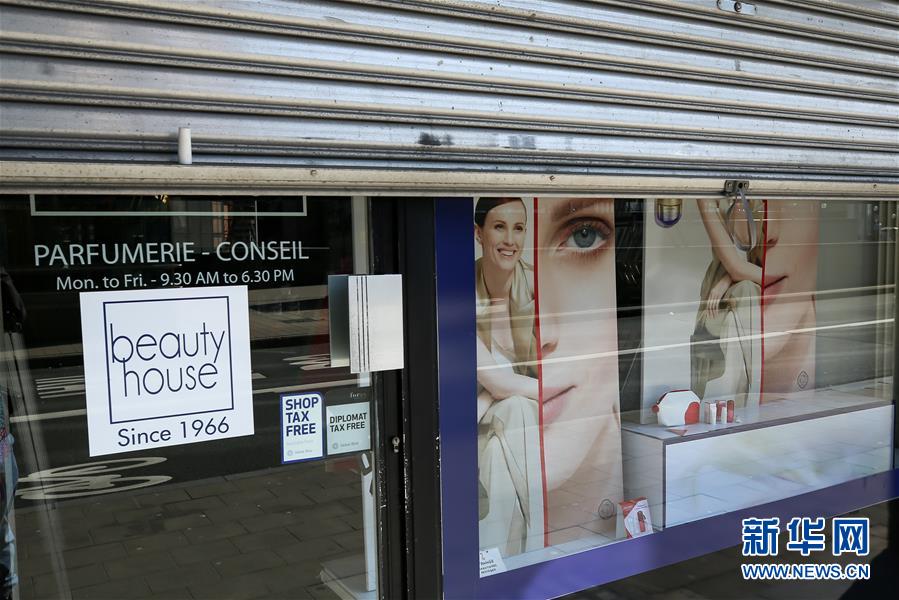 這是3月18日在比利時布魯塞爾拍攝的一家關閉的化妝品商店。 新華社記者 張鋮 攝