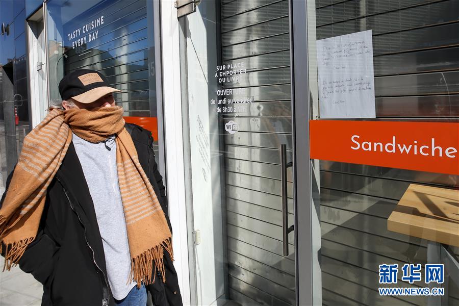 3月18日,在比利時布魯塞爾,一名男子查看快餐店張貼的關閉告示。 新華社記者 張鋮 攝