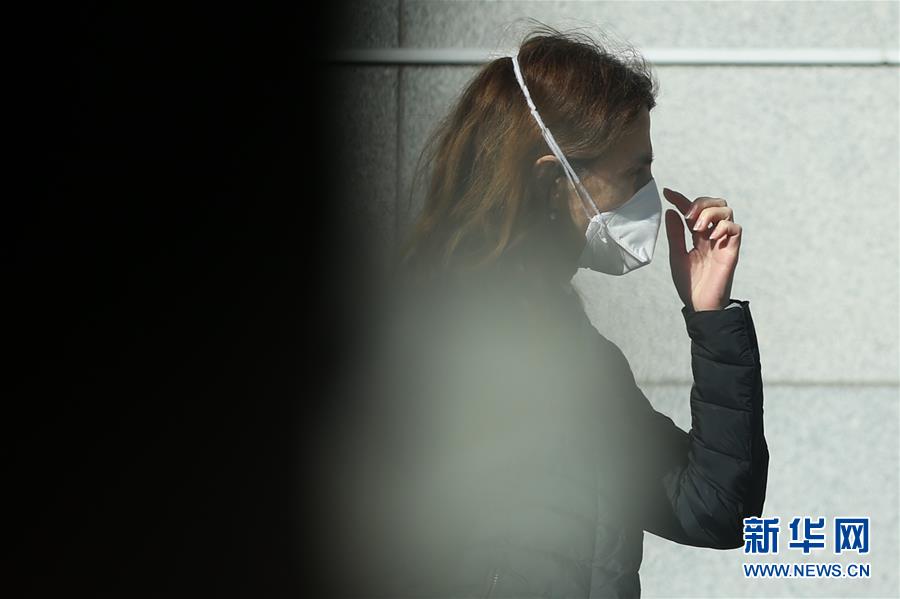 3月18日,在比利時布魯塞爾,一名女子在街道上行走。 新華社記者 鄭煥松 攝