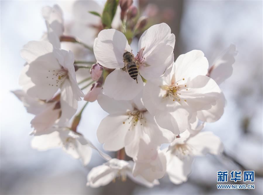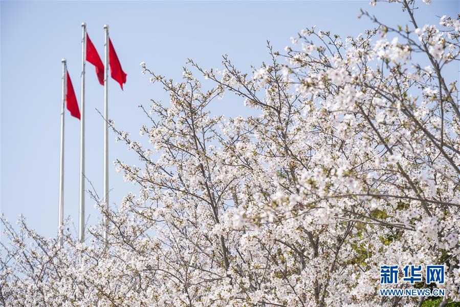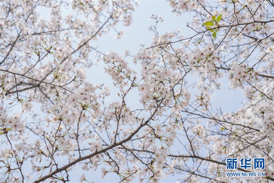 在武漢市武昌區被網友稱為“武漢最美停車場”的湖北日報停車場,櫻花開放(3月19日攝)。 新華社記者 才揚 攝