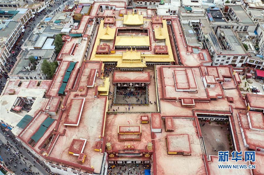 8月10日無人機拍攝的大昭寺。新華社記者李鑫攝