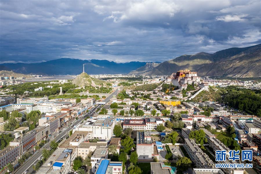 鳥瞰拉薩古城(8月10日無(wú)人機(jī)拍攝)。新華社記者晉美多吉攝