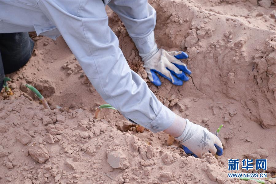 月15日,農民在杭錦旗道勞呼都格嘎查的農田里栽種紅蔥苗。春種時節,在內蒙古鄂爾多斯市杭錦旗道勞呼都格嘎查,農民忙著播種紅蔥。在鄂爾多斯高原種植的紅蔥耐旱耐寒,具有較好的經濟效益。新華社記者徐欽攝