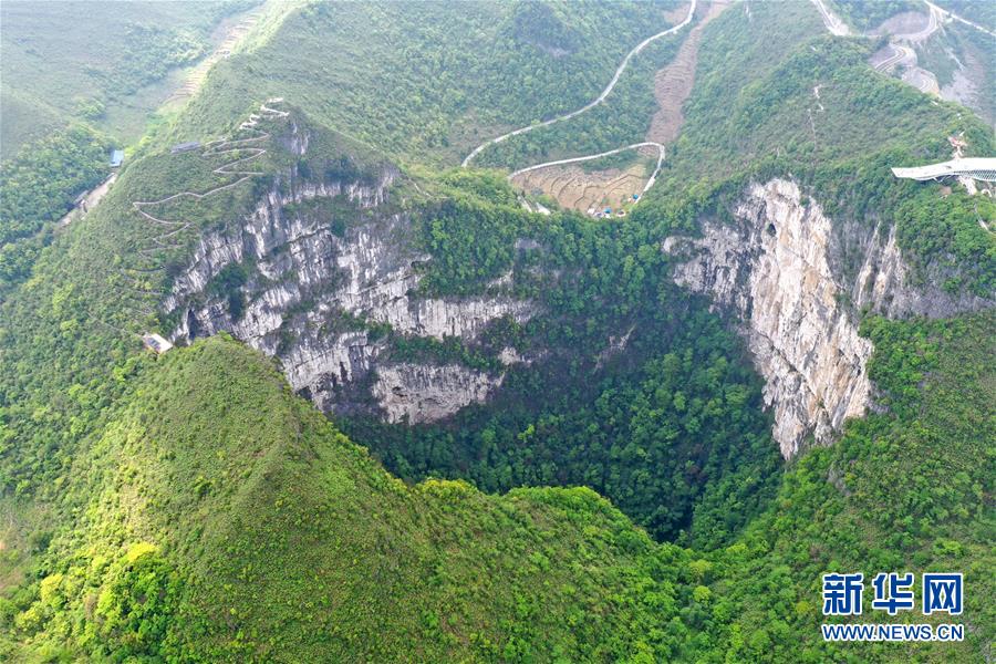這是4月19日拍攝的中國樂業—鳳山世界地質公園內的大石圍天坑(無人機照片)。中國樂業—鳳山世界地質公園位于廣西西北部,公園內地質遺跡包括天坑群、天窗群、鐘乳石等,具有重要的科研價值和美學觀賞價值。