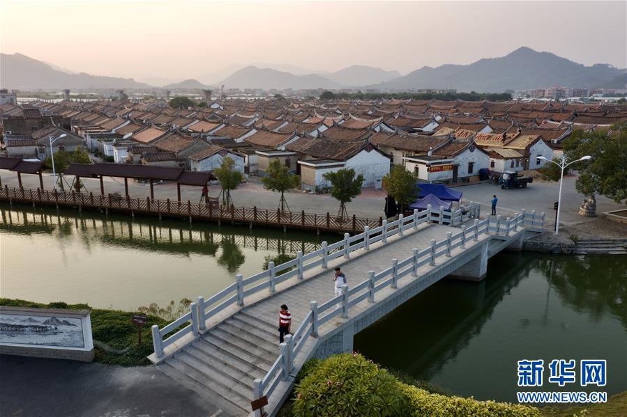 11月14日,行人經過埭美村一座石橋(無人機拍攝)。新華社記者姜克紅攝