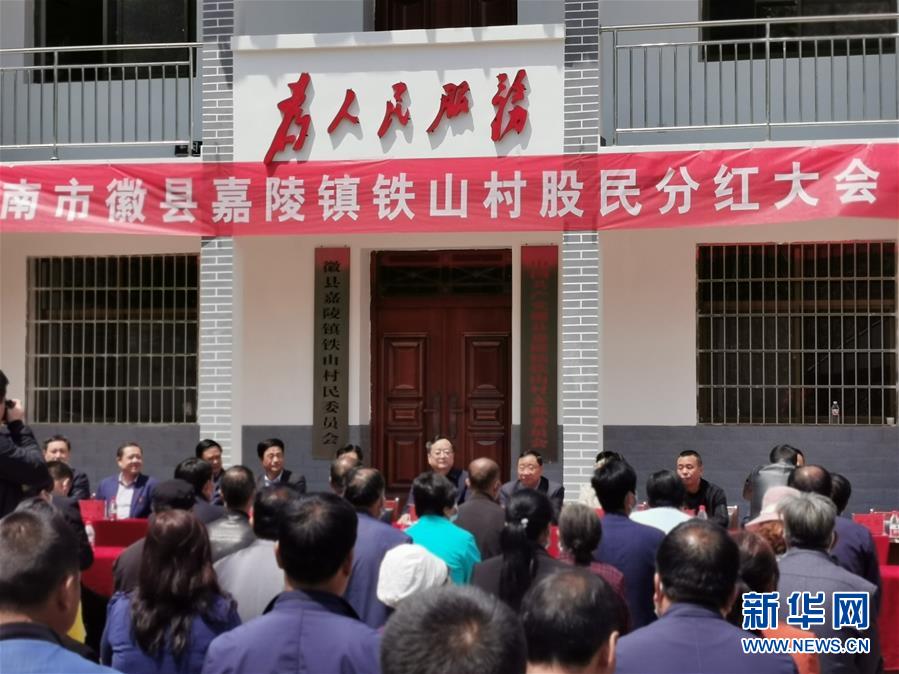 4月24日拍攝的甘肅省隴南市徽縣鐵山村公開分紅大會現場。新華社記者張新新攝