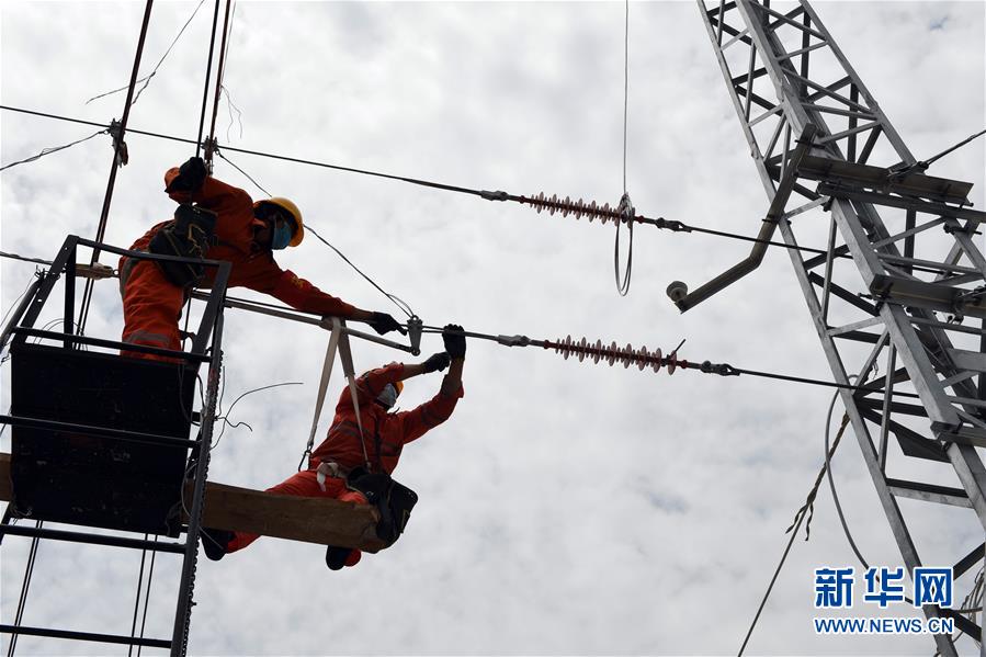 4月25日,在福建省寧德市屏南車站,施工人員開展接觸網(wǎng)調(diào)整作業(yè)。中鐵電氣化局集團上海公司推動衢寧鐵路福建段通信工程、信號工程、電力工程、電氣化工程各環(huán)節(jié)協(xié)同復(fù)工復(fù)產(chǎn),目前來自河北、河南、四川等國內(nèi)10個省的900多名員工返崗就業(yè)。衢寧鐵路北起浙江省衢州市,南至福建省寧德市,全長379.2公里。新華社記者彭張青攝