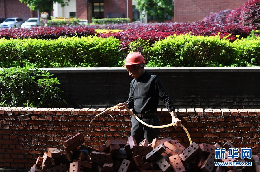 4月26日,工人在渝中區大溪溝街道雙鋼路社區改造提升項目施工現場作業。近段時間以來,重慶市渝中區大溪溝街道加快推進轄區內老舊小區改造提升工作,從環境衛生、房屋管理及養護、安防及車輛管理、綠化管理等方面進行綜合改造提升,以增強社區居民的幸福感、獲得感、安全感。新華社記者王全超攝