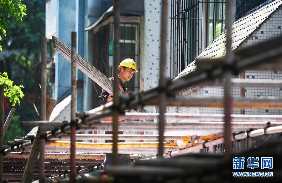 4月26日,工人在渝中區(qū)大溪溝街道雙鋼路社區(qū)改造提升項(xiàng)目施工現(xiàn)場作業(yè)。近段時(shí)間以來,重慶市渝中區(qū)大溪溝街道加快推進(jìn)轄區(qū)內(nèi)老舊小區(qū)改造提升工作,從環(huán)境衛(wèi)生、房屋管理及養(yǎng)護(hù)、安防及車輛管理、綠化管理等方面進(jìn)行綜合改造提升,以增強(qiáng)社區(qū)居民的幸福感、獲得感、安全感。新華社記者王全超攝