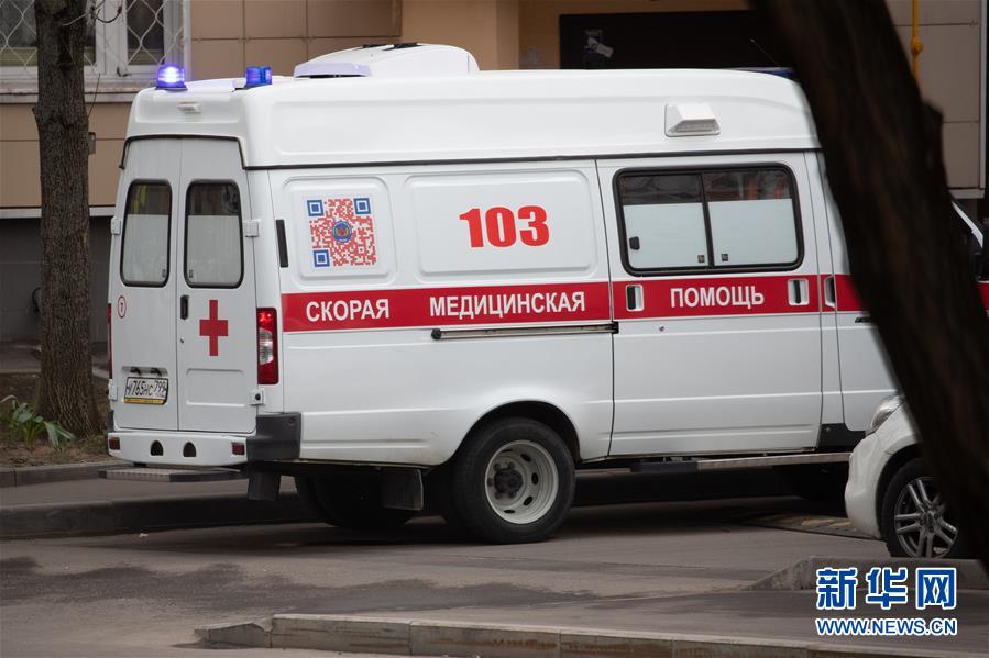 4月27日,在俄羅斯首都莫斯科,救護車停在居民樓附近。據俄羅斯防疫指揮部27日消息,過去24小時俄新增新冠肺炎確診病例6198例,累計確診87147例,單日增幅7.66%。新華社記者白雪騏攝
