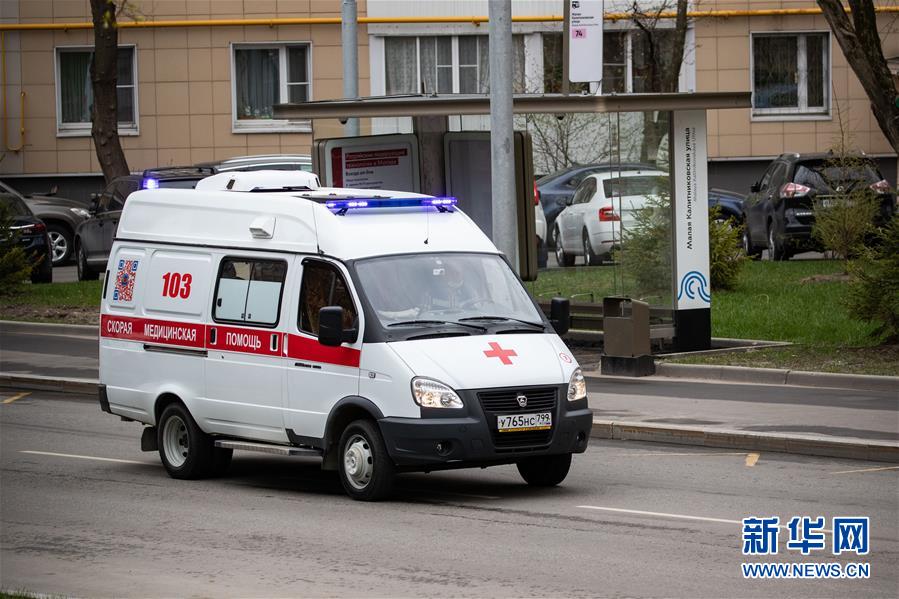 4月27日,在俄羅斯首都莫斯科,救護車從一個住宅區駛離。據俄羅斯防疫指揮部27日消息,過去24小時俄新增新冠肺炎確診病例6198例,累計確診87147例,單日增幅7.66%。新華社記者白雪騏攝