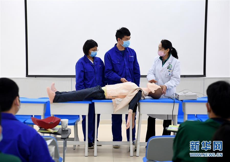 4月27日,常青街道竹西社區邀請醫護人員(后排右一)為轄區企業工人講解急救知識。當日,安徽省合肥市包河區常青街道開展健康講座、職業病防護宣傳等系列活動,提高勞動者的自我防護意識和能力,迎接“五一”國際勞動節。新華社記者劉軍喜攝