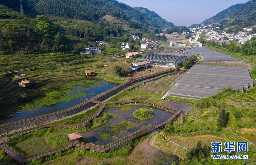 這是4月29日拍攝的四川珙縣三合村現代農業產業示范園區及旅游休閑設施(無人機照片)。