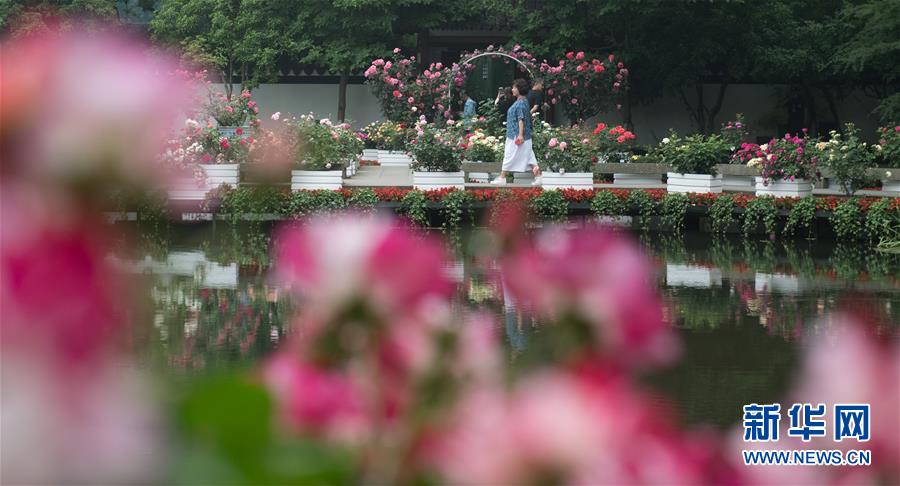 5月5日,游客在西湖畔的郭莊觀看月季花展。“五一”期間,第八屆杭州西湖月季花精品展在杭州西子湖畔舉行,展出國(guó)內(nèi)外700余個(gè)月季品種。新華社記者翁忻旸攝