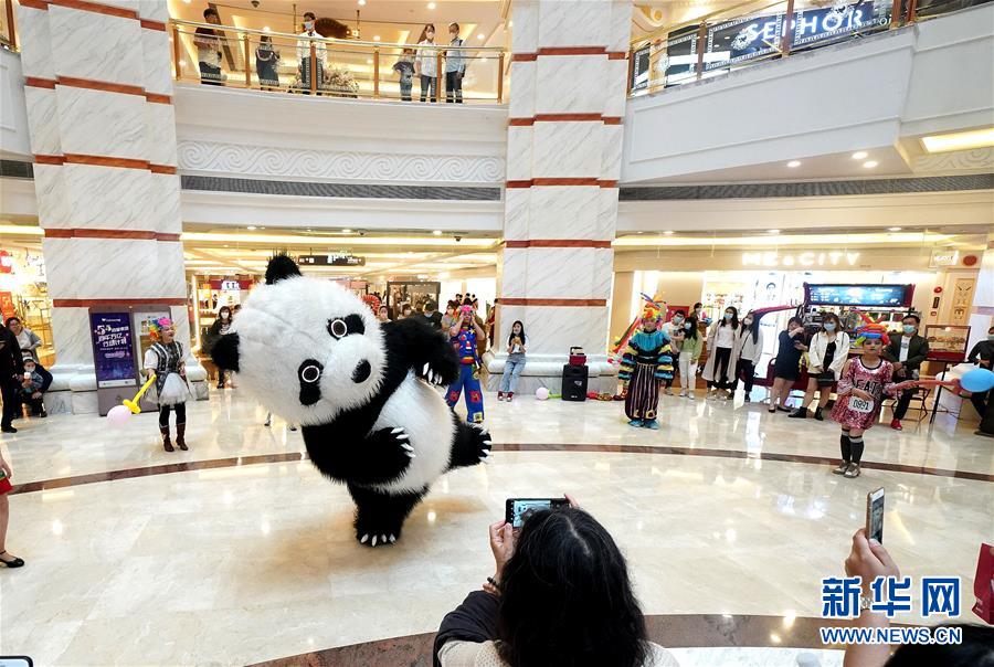 5月5日,大熊貓人偶在上海環(huán)球港商場(chǎng)為“五五購(gòu)物節(jié)”營(yíng)造氣氛。5月4日晚,上海首次啟動(dòng)大規(guī)模商業(yè)促銷(xiāo)活動(dòng)“五五購(gòu)物節(jié)”,多家在線(xiàn)新經(jīng)濟(jì)企業(yè)參與,通過(guò)線(xiàn)上流量?jī)?yōu)勢(shì)反哺線(xiàn)下賣(mài)場(chǎng),實(shí)現(xiàn)電商與實(shí)體零售融合互動(dòng),激活消費(fèi)潛力、驅(qū)動(dòng)消費(fèi)復(fù)蘇。據(jù)“上海發(fā)布”的消息,截至5日14時(shí)12分,“五五購(gòu)物節(jié)”上海地區(qū)消費(fèi)支付總額已超100億元。新華社記者陳飛攝