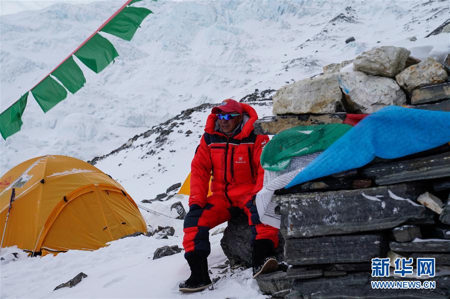 5月7日,2020珠峰高程測量登山隊(duì)進(jìn)駐海拔6500米的前進(jìn)營地。新華社特約記者扎西次仁攝