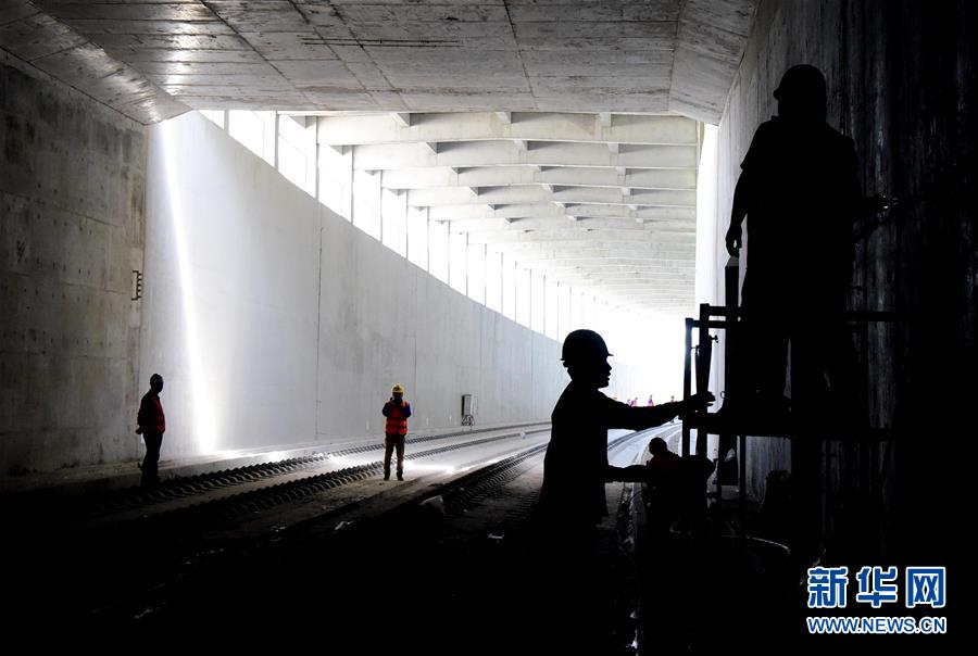 5月10日,中鐵電氣化局工程人員在鄭州新鄭機場至鄭州南站城際鐵路工地施工。新華社記者朱祥攝