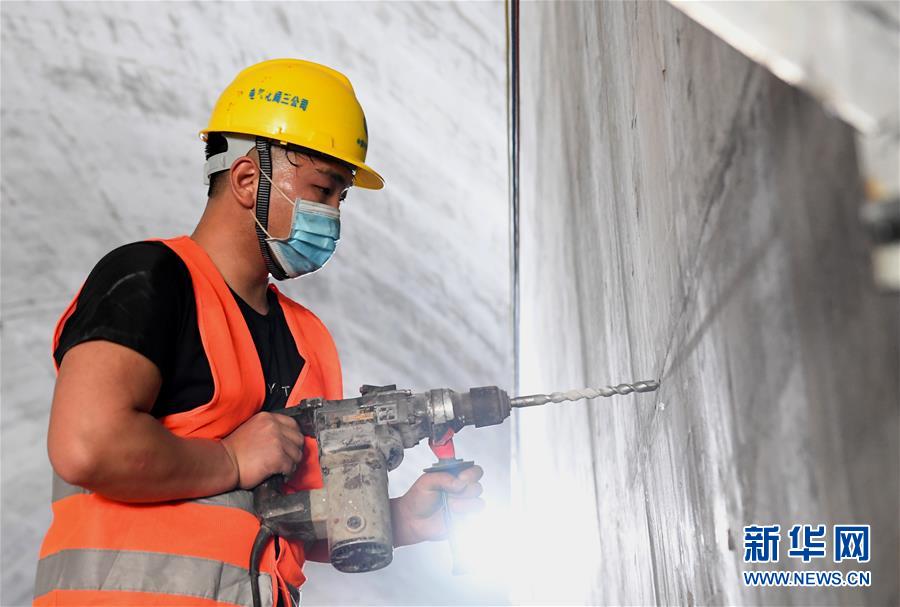 5月10日,中鐵電氣化局工程人員在鄭州新鄭機場至鄭州南站城際鐵路工地施工。新華社記者郝源攝