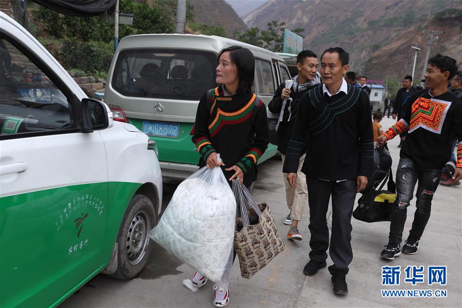 5月12日,四川省昭覺縣阿土列爾村第一批26戶貧困戶陸續下山準備搬新家。新華社記者江宏景攝