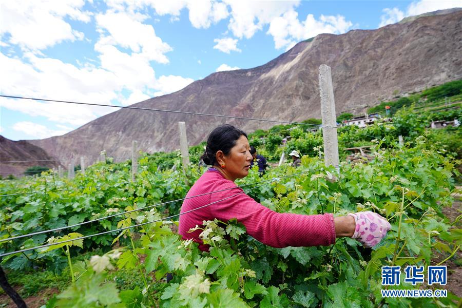 在西藏昌都市芒康縣木許鄉阿東村,村民在葡萄園里忙碌(5月6日攝)。新華社記者詹彥攝
