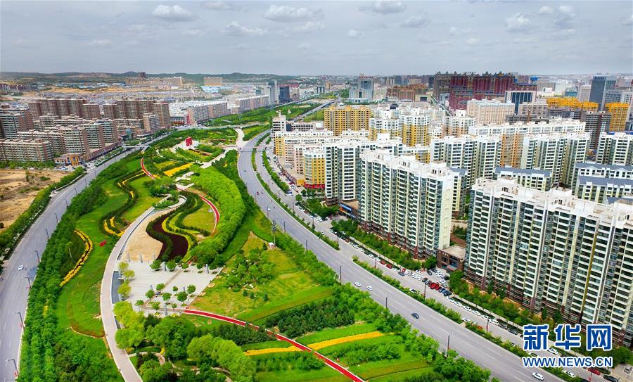 5月25日拍攝的榆林市高新區綠化走廊(無人機照片)。新華社記者陶明攝
