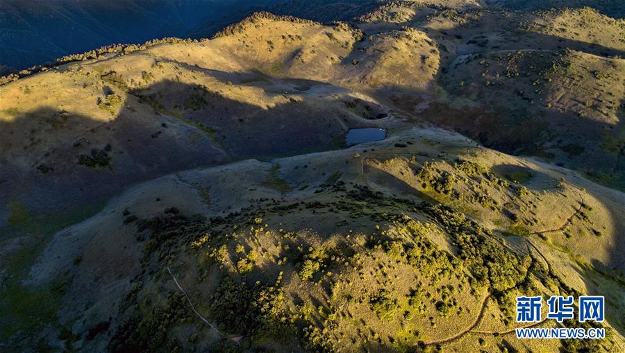 6月30日,朝霞照耀下的神田草甸(無人機(jī)照片)。位于陜西省安康市嵐皋縣與重慶市城口縣交界處大巴山神田主脊北坡的神田草甸,面積超過1.1萬畝。夏日的朝霞中,起伏的草甸仿佛一塊寬大無邊的綠色地毯,鑲嵌在大巴山上,如詩如畫。新華社記者陶明攝