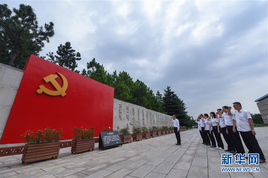 7月1日,嘉興市新冠肺炎疫情抗疫一線黨員在南湖景區的南湖革命紀念館參加“七一”重溫入黨誓詞活動。新華社記者徐昱攝