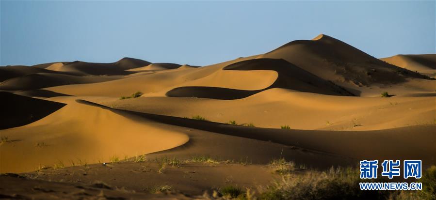 這是7月8日拍攝的騰格里沙漠風光。位于內蒙古自治區阿拉善左旗西南部和甘肅省中部邊境的騰格里沙漠是我國第四大沙漠,總面積約為4.3萬平方公里。夏日傍晚,騰格里沙漠連綿的沙丘被日光勾勒出美麗的線條,美不勝收。新華社記者連振攝