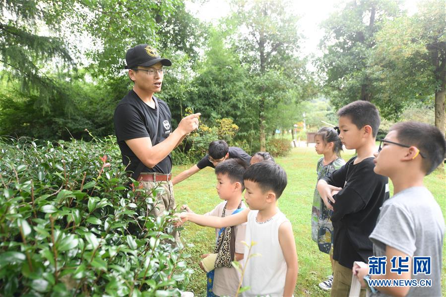 7月27日,導師帶領小朋友們觀察植物。新華社記者 翁忻旸 攝