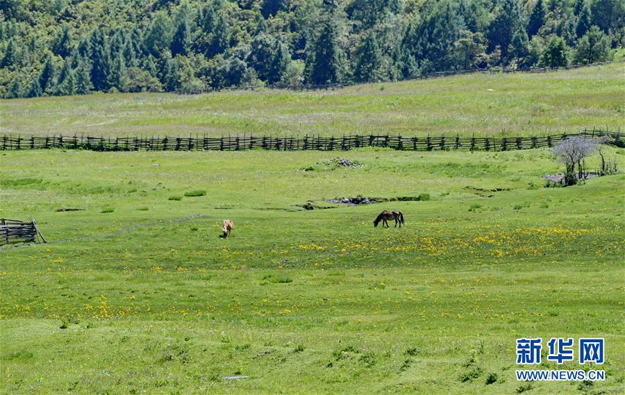 魯朗旅游小鎮的牧場(7月26日攝)。新華社記者 張汝鋒 攝
