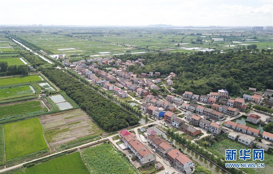 鳥瞰鄂州市長港鎮峒山村(8月6日攝,無人機照片)。近年來,湖北省鄂州市長港鎮峒山村著力提升村居環境,積極實施廁所改造、污水處理、道路硬化、植樹綠化等措施,改善鄉村面貌,提升村民幸福感。新華社記者 程敏 攝