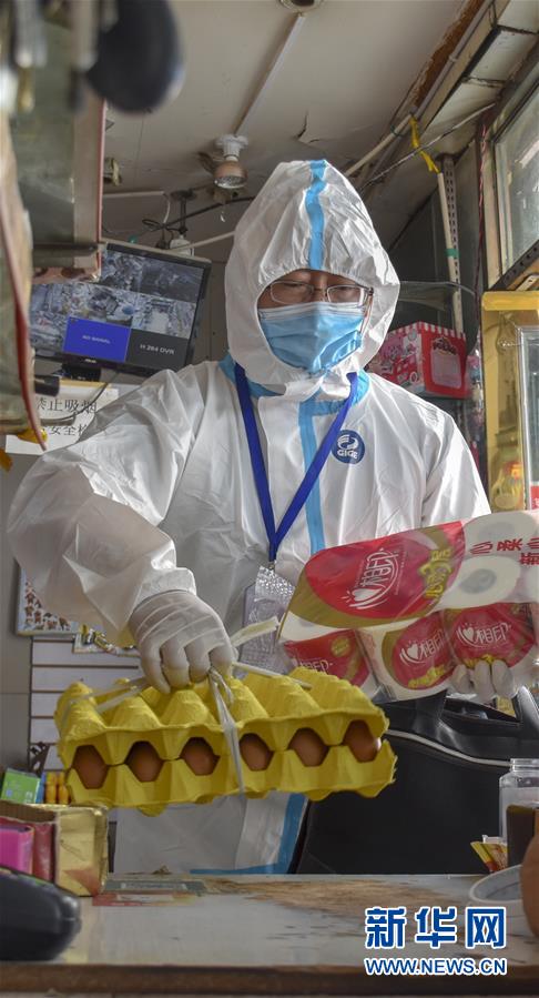 8月12日,烏魯木齊市天山區山西巷社區工作人員王志鷹幫居民代購生活用品。新華社記者 高晗 攝