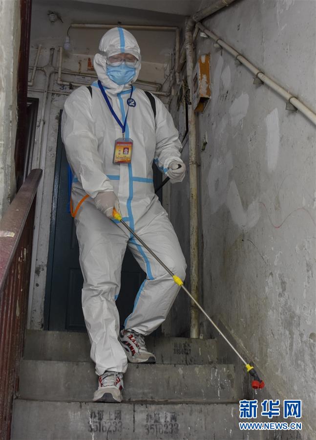 老王和同事們要完成轄區居民的登記、備案、生活物資配送、困難訴求統計和跟蹤服務等工作。“勤務員”老王不僅要做好服務,每天還要背上消毒工具,對小區地面、門廊、門把手、樓道、樓梯扶手反復噴灑,濃郁的消毒水味雖然刺鼻,但此刻更能讓居民感到安心。