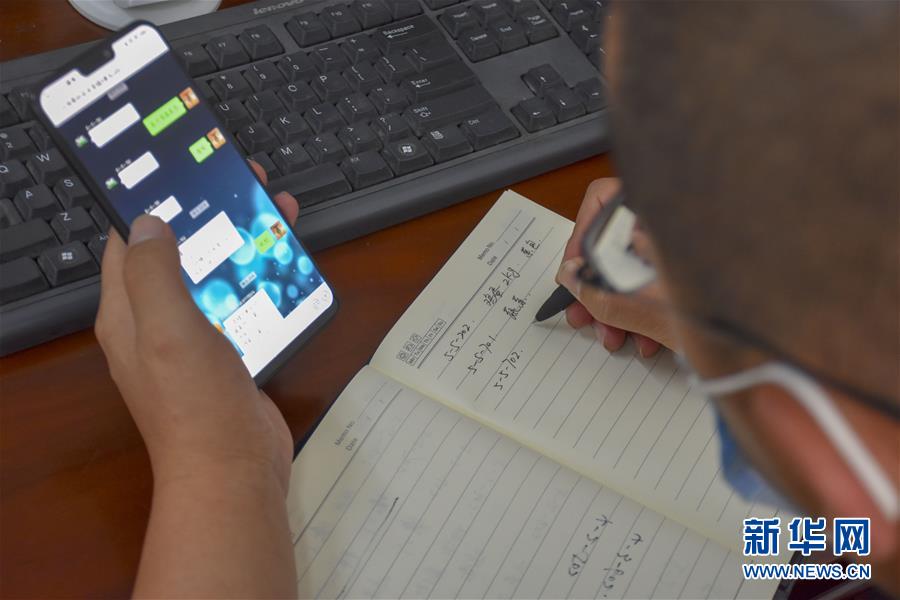 8月12日,烏魯木齊市天山區山西巷社區工作人員王志鷹在記錄當天要完成的居民“服務清單”。新華社記者 高晗 攝